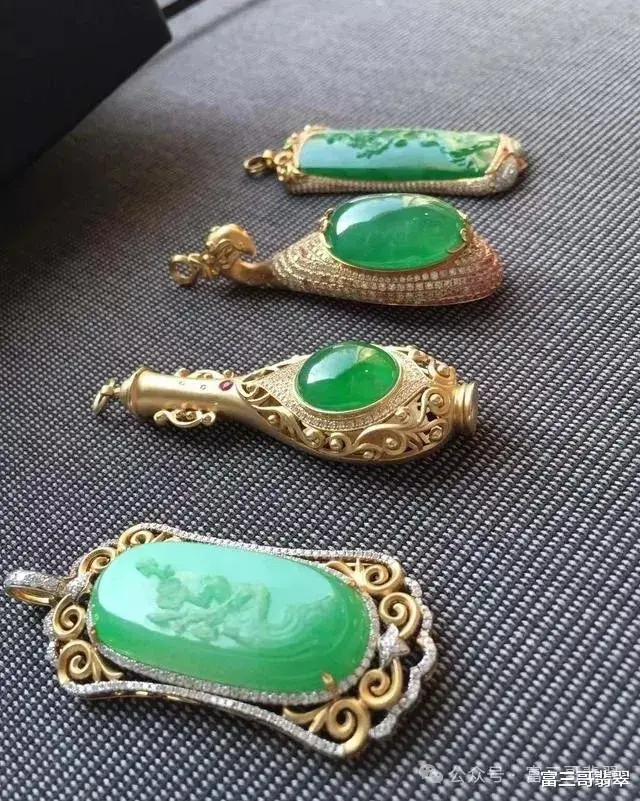 假如翡翠是镶嵌在黄金上的,那就需要观察黄金的颜色是否能与翡翠的颜色相得益彰。